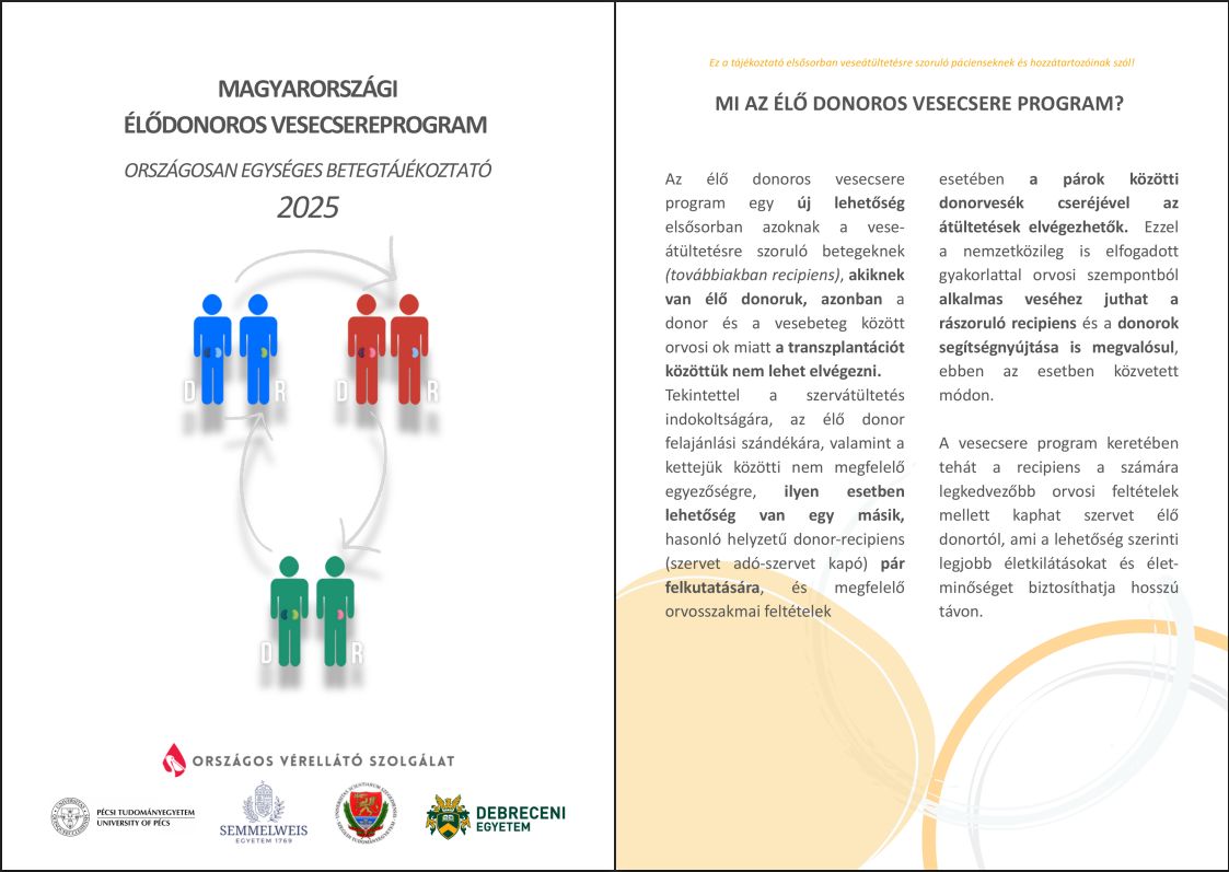 The Hungarian program, launched in 2024, relies on the recruitment of additional voluntary donor-recipient pairs. This new leaflet also supports the implementation of the EURO-KEP project and the development of the Hungarian KEP.